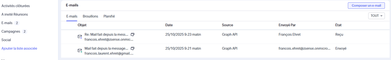 Cette fonctionnalité est précieuse : elle centralise la communication et permet d’alimenter des automatisations (cadences, suivis, recherches avancées, etc.).