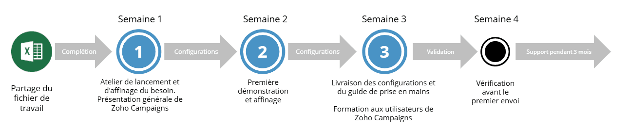 | Applications Zoho CRM et Zoho Campaigns configurées | Z-Sense | 1 semaine | |
